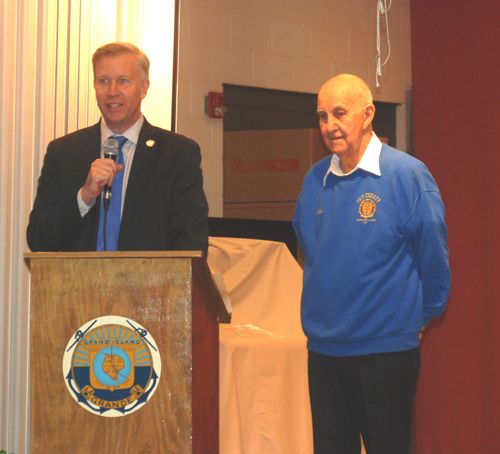 Senator Chris Jacobs Veteran of the Month Program began in the fall of 2017. On Thursday, March 8th, Sen. Jacobs came to the Golden Age Center and presented a proclamation to Grand Island American Legion member Allen Prame as the March 2018 Veteran of the Month. Allen served in the U.S. Navy from 1948-1952 as a machinist in post WWII Europe. When he returned, he was a member of the Teamsters for 40 years in the trucking business. As a past commander of the American Legion, he has devoted countless hours at the annual Hanging Basket sales and Patriot Day Poppy fundraiser. This past fall, his self invented, donation receptacles enhanced the visibility to the public during the fundraiser. Allen has been married to his wife Goldie for 65 years, soon to be celebrating 66!