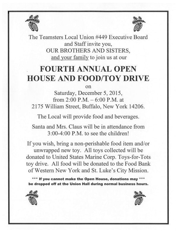 FOURTH ANNUAL OPEN HOUSE AND FOOD/TOY DRIVE